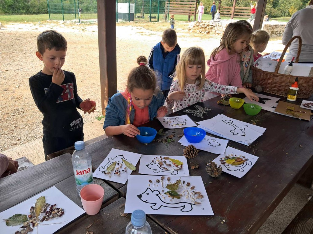 Po dolasku u ZEC Kontija, male pješake dočekala je zaslužena marenda, a potom i slobodna igra – penjanje na stijenu, lovica na livadi, igre loptom, potezanje i šareni padobran. Dio djece okušao se u kreativnoj radionici, izrađujući ježiće i druge životinje od šumskih materijala.